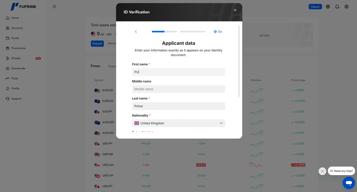 *Please ensure that you are not a resident of the United States, Singapore, Australia, or China, as PU Prime does not accept clients from these countries.