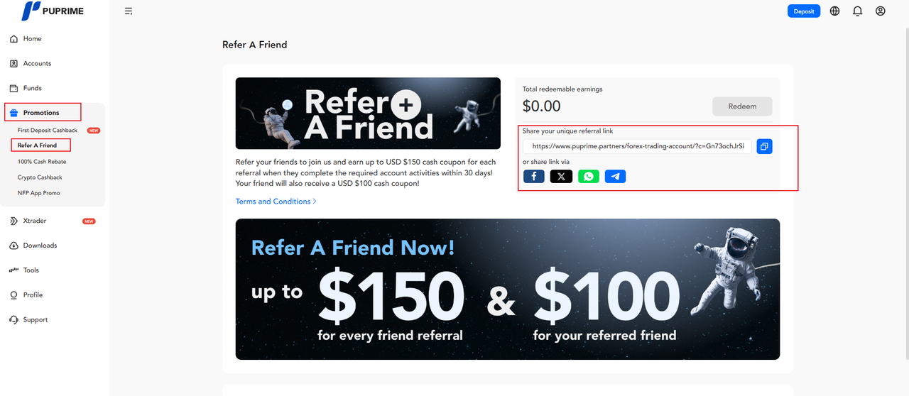 Help Center | PU Prime | More Than Trading Account Management Client Portal How to find your unique referral link to Refer your friends from the Client Portal? After logging into the client portal, select "REFER A FRIEND" under the "PROMOTION" tab. Clients will then be able to access their personalized referral link.