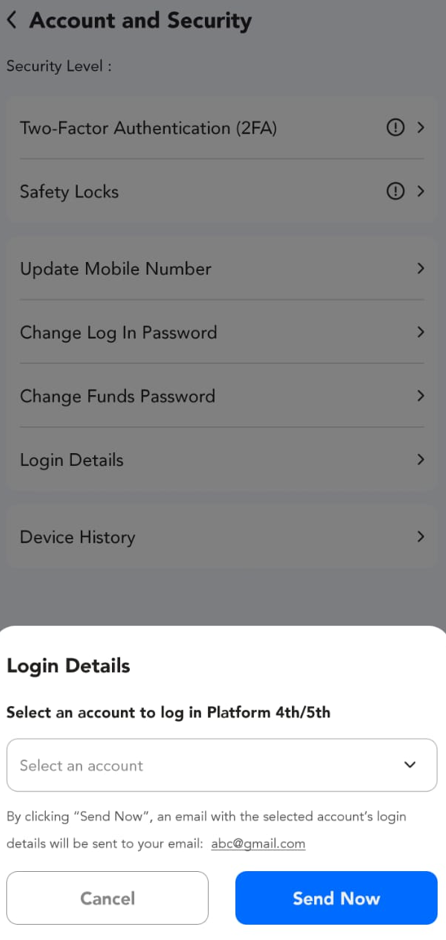 Help Center | PU Prime | More Than Trading Pu Prime App PU Prime App Enquiry How to resend the Login Details? Step 1: Click on the "Profile" button. Step 2: Click "Account and Security". Step 3: Click on "Login Details". Step 4: Select your account and click "Send Now". Please wait for a few minutes to receive the email.