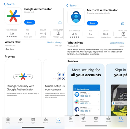 Busca Google Authenticator o Microsoft Authenticator en la App Store.