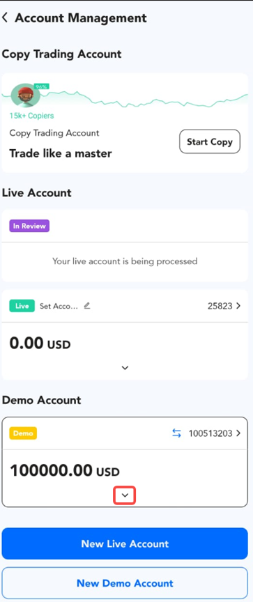 Help Center | PU Prime | More Than Trading Aplicación PU Prime: Consulta sobre la APP de PU Prime ¿Cómo restablecer la cuenta Demo? 1. Haz clic en el botón "Gestión de Cuenta". 2. Haz clic en el botón de flecha. 3. Haz clic en "Restablecer" y luego haz clic en "Aceptar" para restablecer tu cuenta.