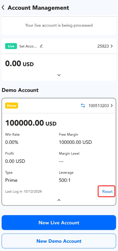 Help Center | PU Prime | More Than Trading PU Prime App Pagtatanong sa PU Prime APP Paano i-reset ang Demo Account? 1. I-click ang button na "Account Management". 2. I-click ang arrow button. 3. I-click ang "Reset" at i-click ang "Ok" upang i-reset ang iyong account.