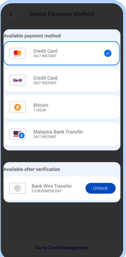 केवल तभी 'बैंक वायर ट्रांसफर' भुगतान विधि का चयन करें जब आपने अपने खाते को सत्यापित कर लिया हो।