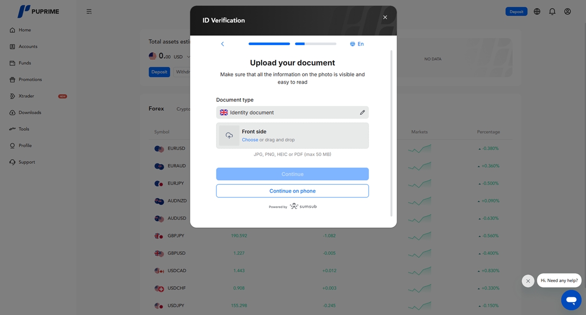 계정 인증에 필요한 문서에 대해서는 이 링크 https://helpcenter.puprime.net/hc/en-gb/articles/6042394880911-What-is-the-account-opening-document-requirement-in-PU-Prime 를 참조하시기 바랍니다. 자세한 내용은 링크를 참조해 주세요.