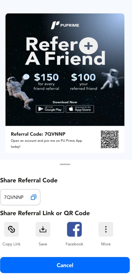 Help Center | PU Prime | More Than Trading Aplicativo PU Prime? Consulta sobre a APP da PU Prime Como referir um amigo? 1. Clique no botão "Perfil". 2. Clique no botão "Referências". 3. Clique em "Convidar Amigos Agora". 4. Copie e partilhe o seu código de referência ou código QR.
