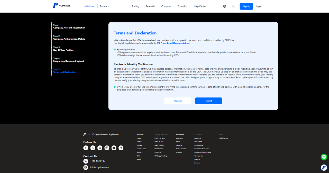 Шаг 5: Внимательно прочитайте "PU Prime Legal Documentation", отметьте оба пункта и нажмите "Submit".