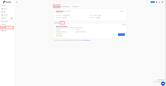 Bạn có thể tìm thấy xác minh "Plus" dưới tab "Hồ sơ", vào Mục Hồ sơ của tôi và nhấp vào "Plus".