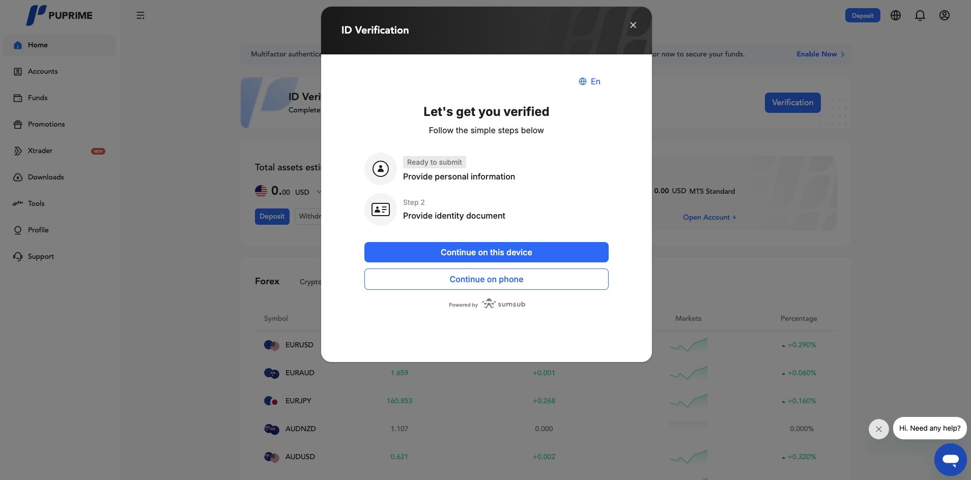 关于账户验证所需的文件,请参考此链接 https://helpcenter.puprime.net/hc/en-gb/articles/6042394880911-What-is-the-account-opening-document-requirement-in-PU-Prime- 以获取更多详情。
