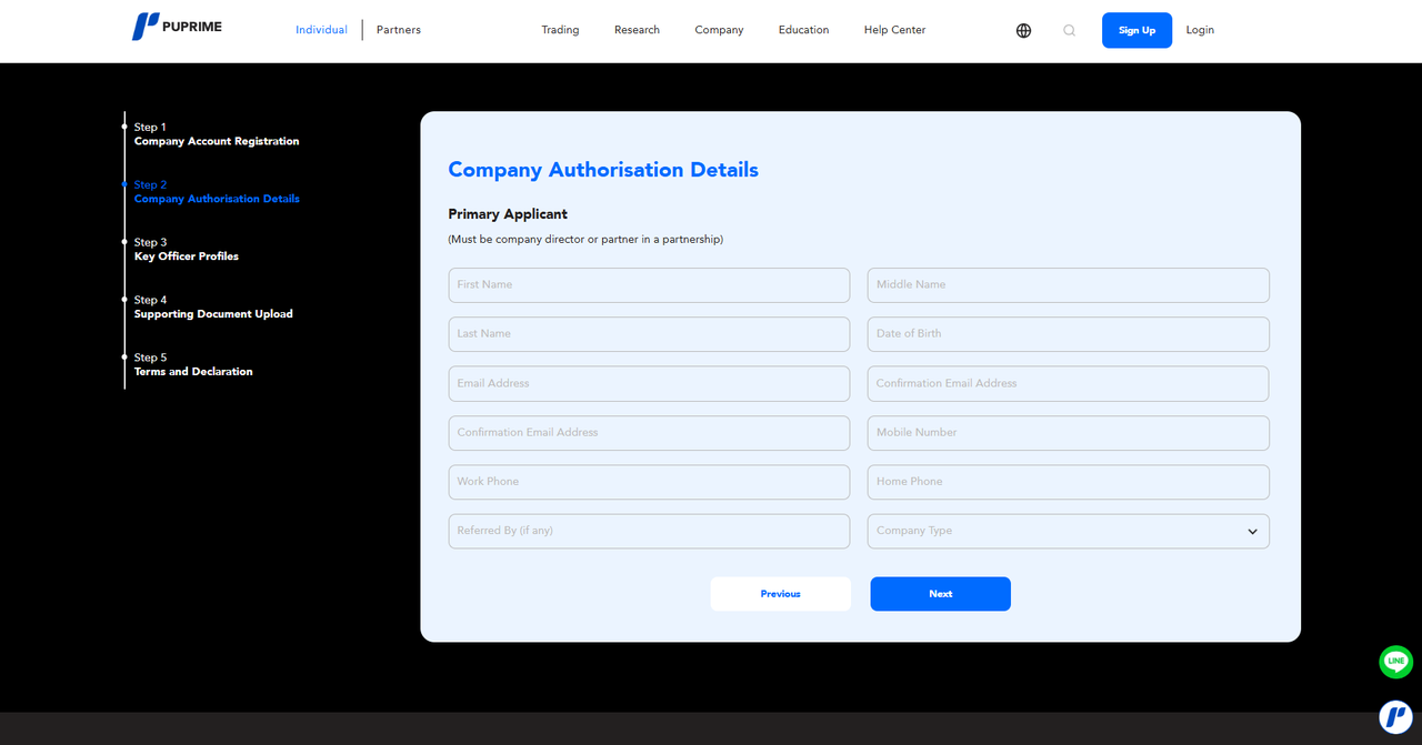 幫助中心 | PU Prime | More Than Trading 帳戶管理 帳戶類型 PU Prime是否提供公司賬戶? 是的,PU Prime 確實提供公司帳戶。 若您希望申請公司帳戶,請通過 https://www.puprime.com/forex-trading-account/ 進入PU Prime註冊網站,並選擇「公司帳戶」。 然後,您需要完成5個步驟,填寫您公司帳戶的信息: 步驟1:公司帳戶註冊填寫「公司帳戶詳情」、「註冊商業地址」和「產品選擇」,然後點擊「下一步」。 步驟2:填寫「主申請人」並點擊「下一步」 步驟3:填寫「主要官員簡介」並點擊「下一步」 步驟4:上傳“公司成立證書”、“公司註冊地址證明”、“執行包”和“實際控制人/最終受益人/授權帳戶操作人證明”,然後點擊“下一步”。注意:您需要先下載“執行套件”,簽署後再上傳。 步驟5:仔細閱讀“PU Prime 法律文件”,勾選兩個框後點擊“提交”。 您的申請已收到,您的專屬帳戶經理將會在不久後聯絡您,討論有關申請的事宜。